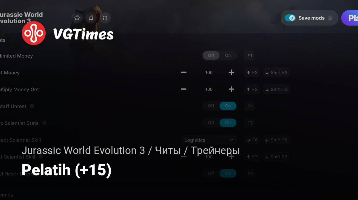 - Unlimited Dinosaurs Stamina — Бесконечная выносливость динозавров.