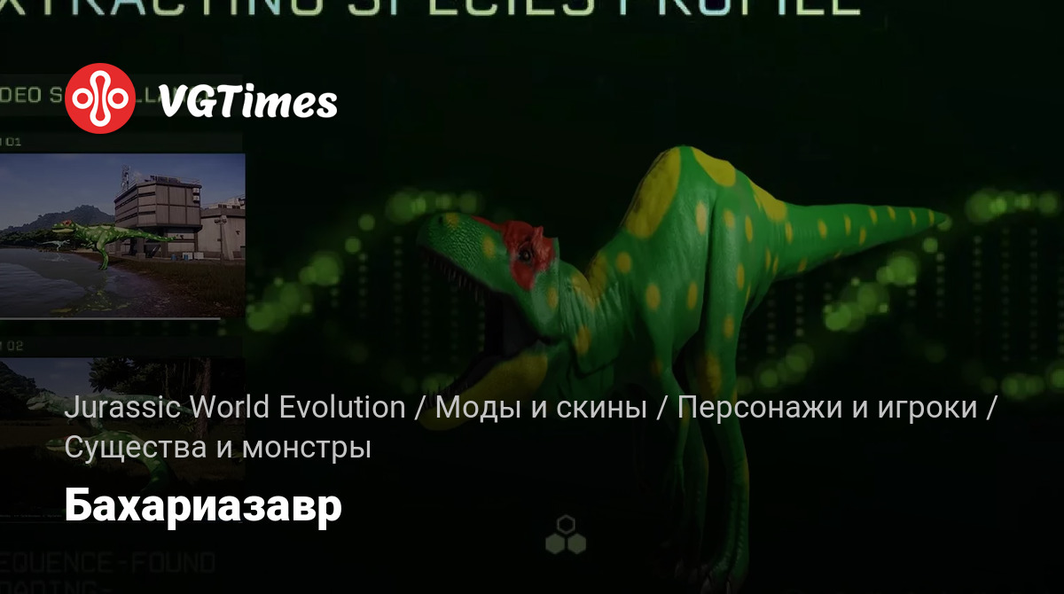Добавляет в игру североафриканского теропода — бахариазавра. Я был удивлен, не увидев никаких модов для этого, поэтому решил сделать его сам, потому что это один из самых крупных динозавров-теропод.