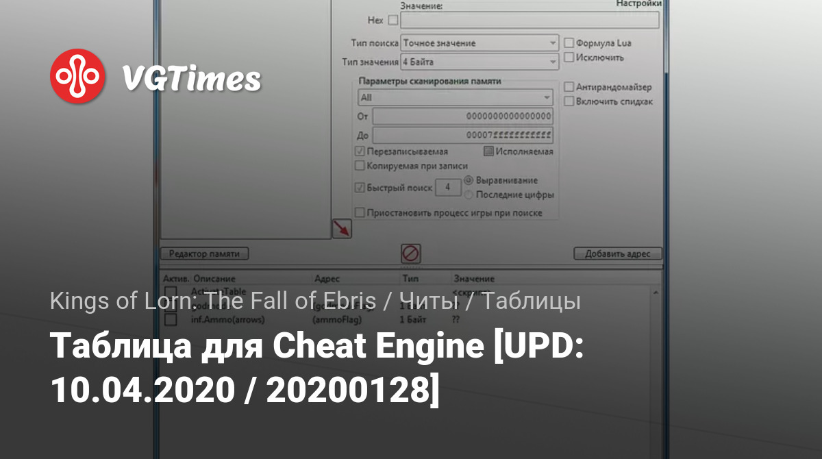 1. Запустить Cheat Engine, "Load" и выбрать таблицу