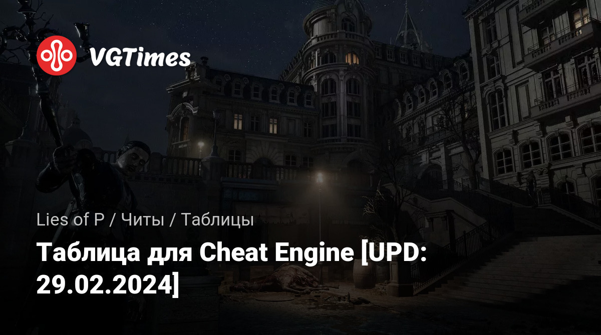• Lies of P — Таблица для Cheat Engine [UPD: 29.02.2024]