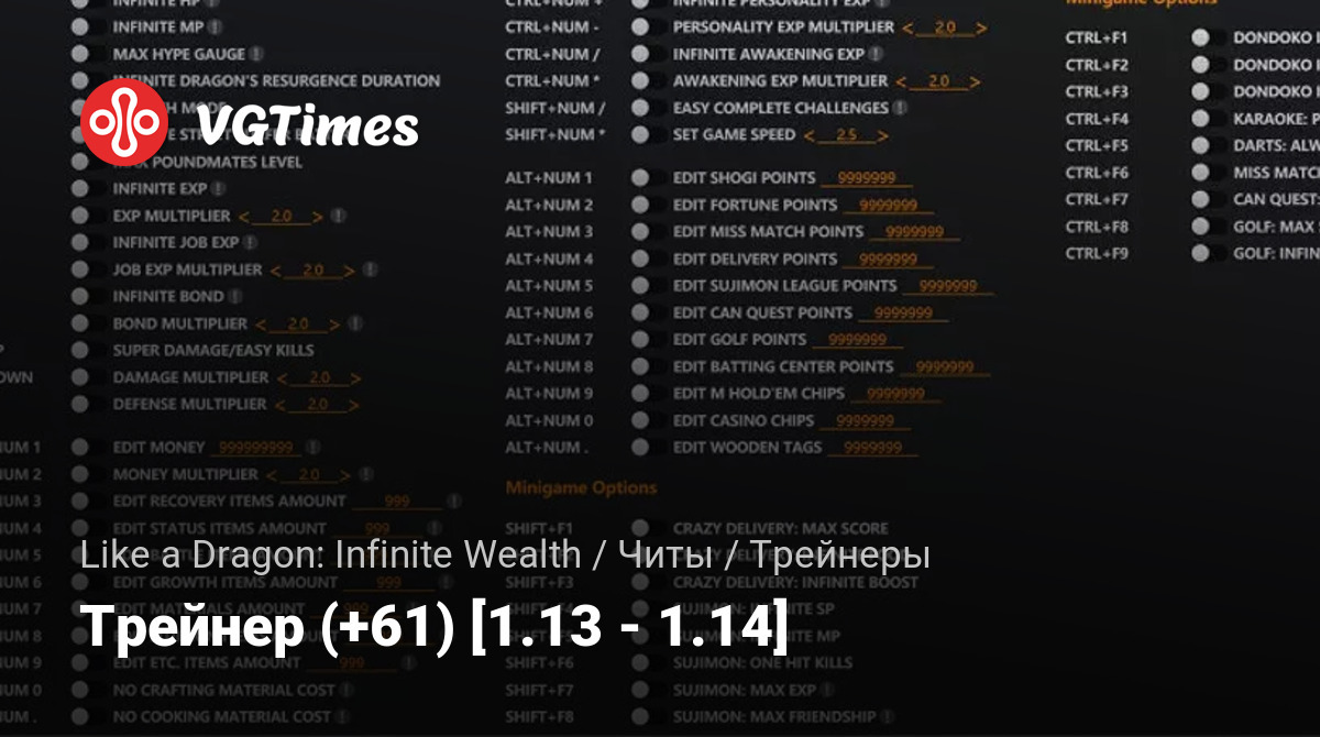 - Ctrl+F9 – гольф: бесконечные удары (вызов бинго).