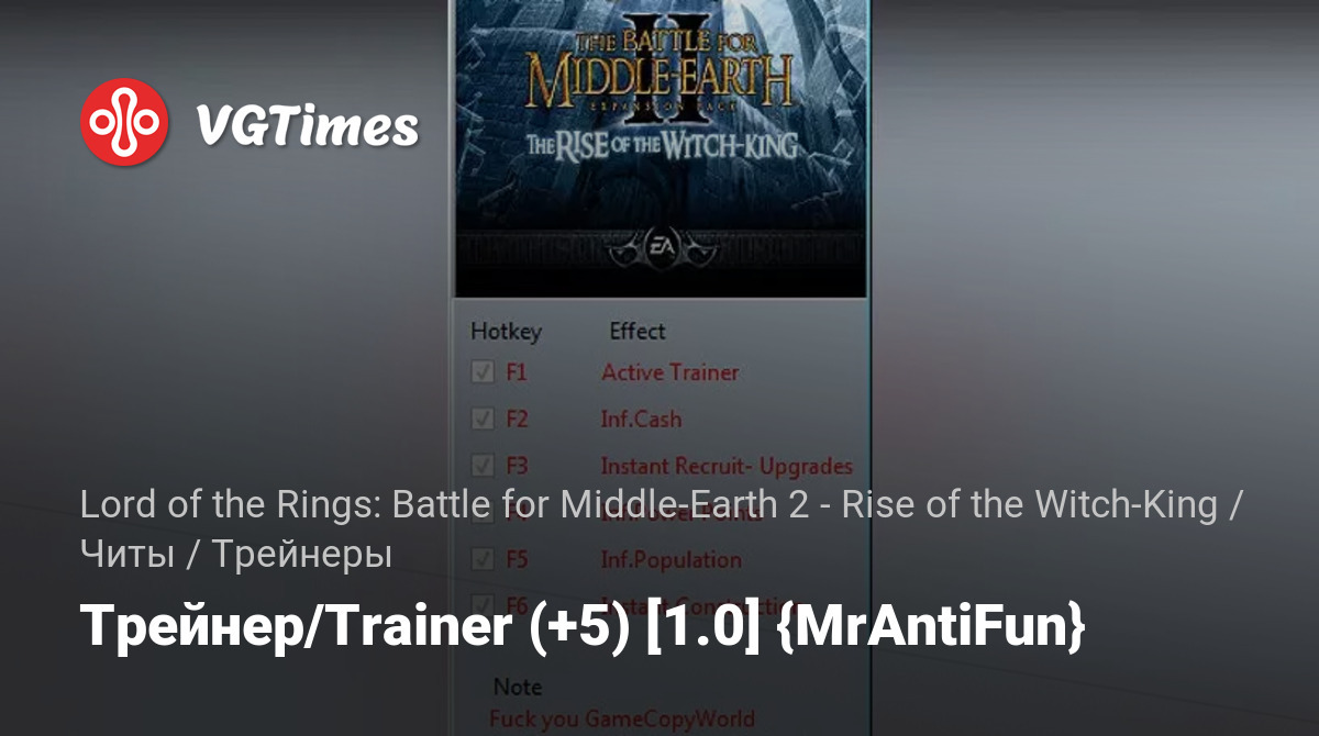 Permainan Lord of the Rings: Battle for Middle-Earth 2 - Rise of the Witch-King Berkas Pelatih Трейнер/Trainer (+5) [1.0] {MrAntiFun}