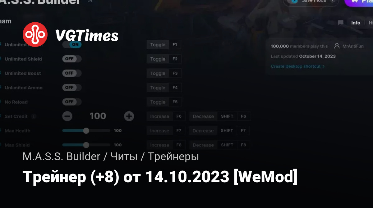 Трейнер (+8) от 14.10.2023 [WeMod]