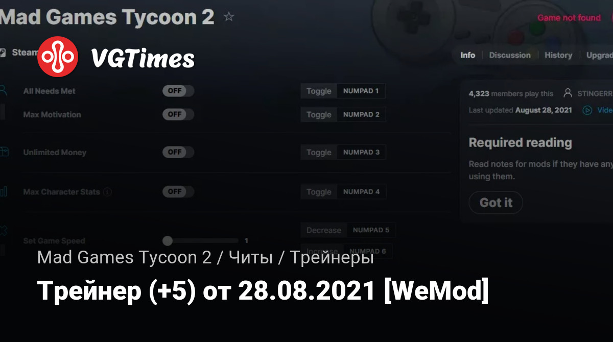 Для использования трейнера необходима установка системы WeMod (требуется онлайн подключение).
