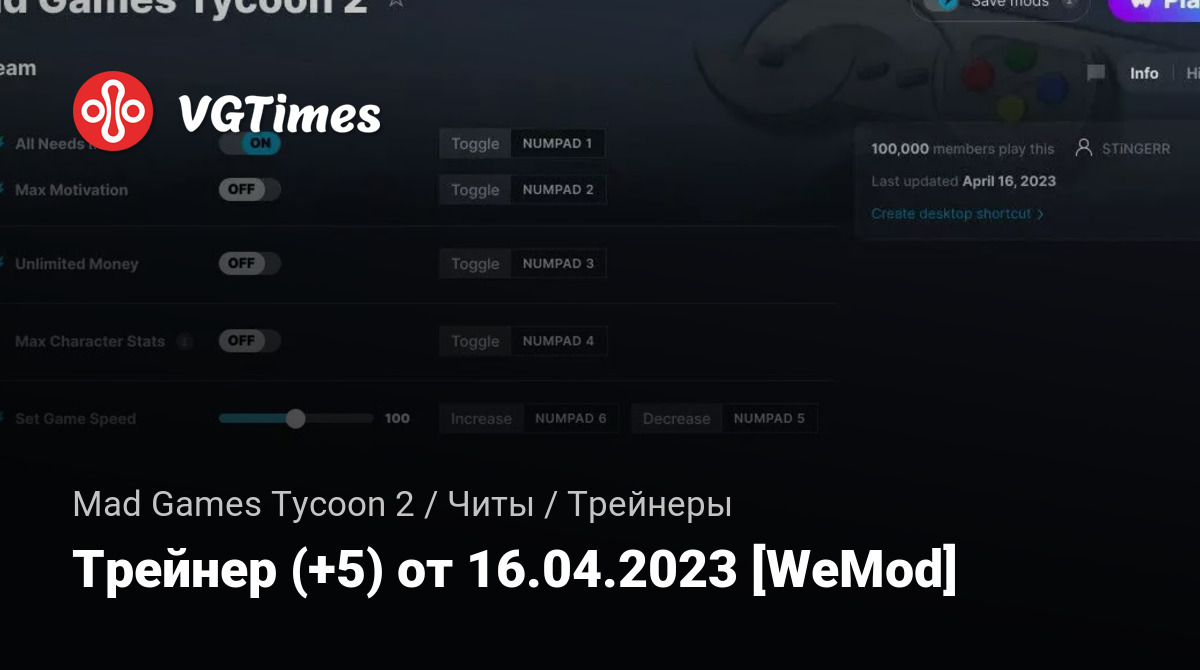 Для использования трейнера необходима установка системы WeMod (требуется онлайн подключение).