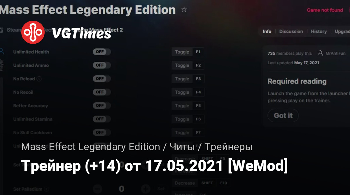 Для использования трейнера необходима установка системы WeMod (требуется онлайн подключение).