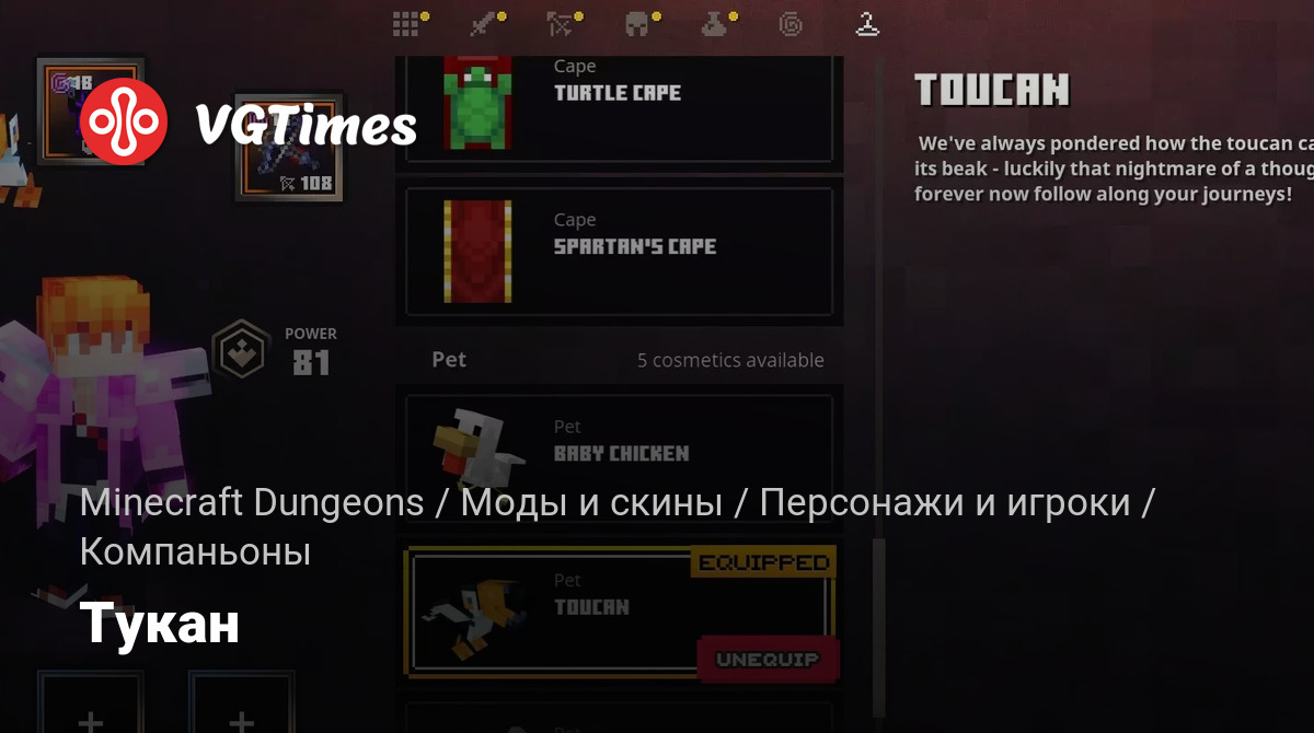 Этот мод заменит вашего компаньона на тукана.