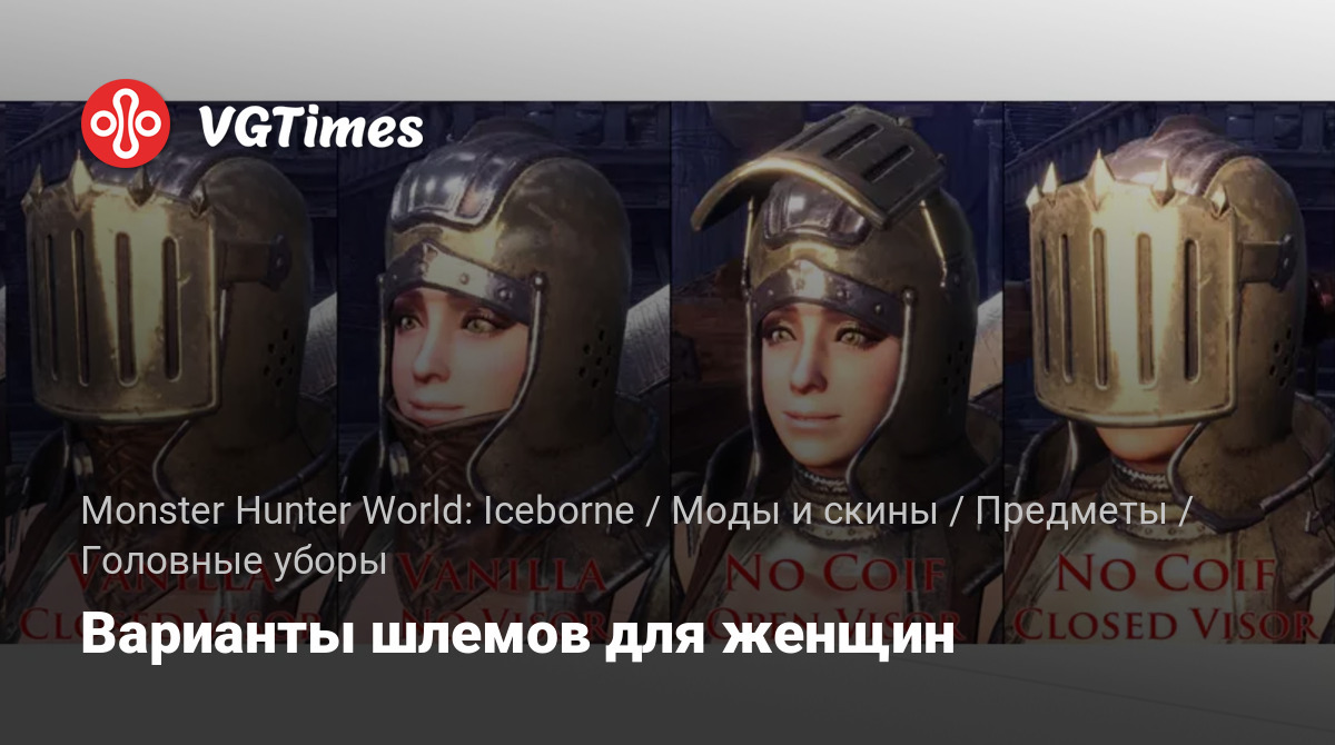 Этот мод добавляет в игру 5 новых видов шлемов из металла для женщин охотников. Все модели выполнены в отличном качестве и имеют высокую детализацию. Есть шлемы с открытым / закрытым визором и шлемы с капюшоном / без капюшона.