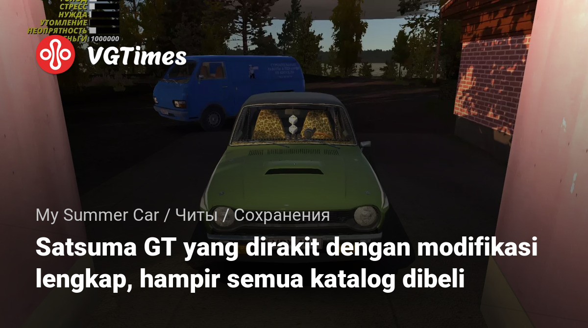 Permainan My Summer Car Berkas Simpan Satsuma GT yang dirakit dengan modifikasi lengkap, hampir semua katalog dibeli