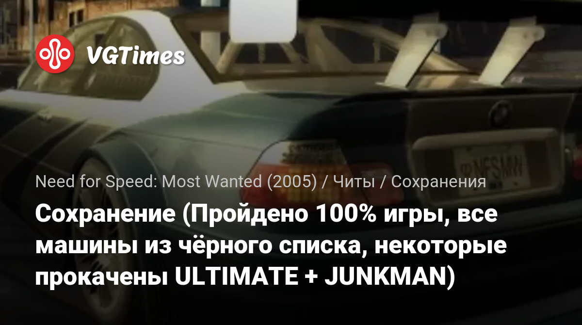 Сохранение (Пройдено 100% игры, все машины из чёрного списка, некоторые прокачены ULTIMATE + JUNKMAN)