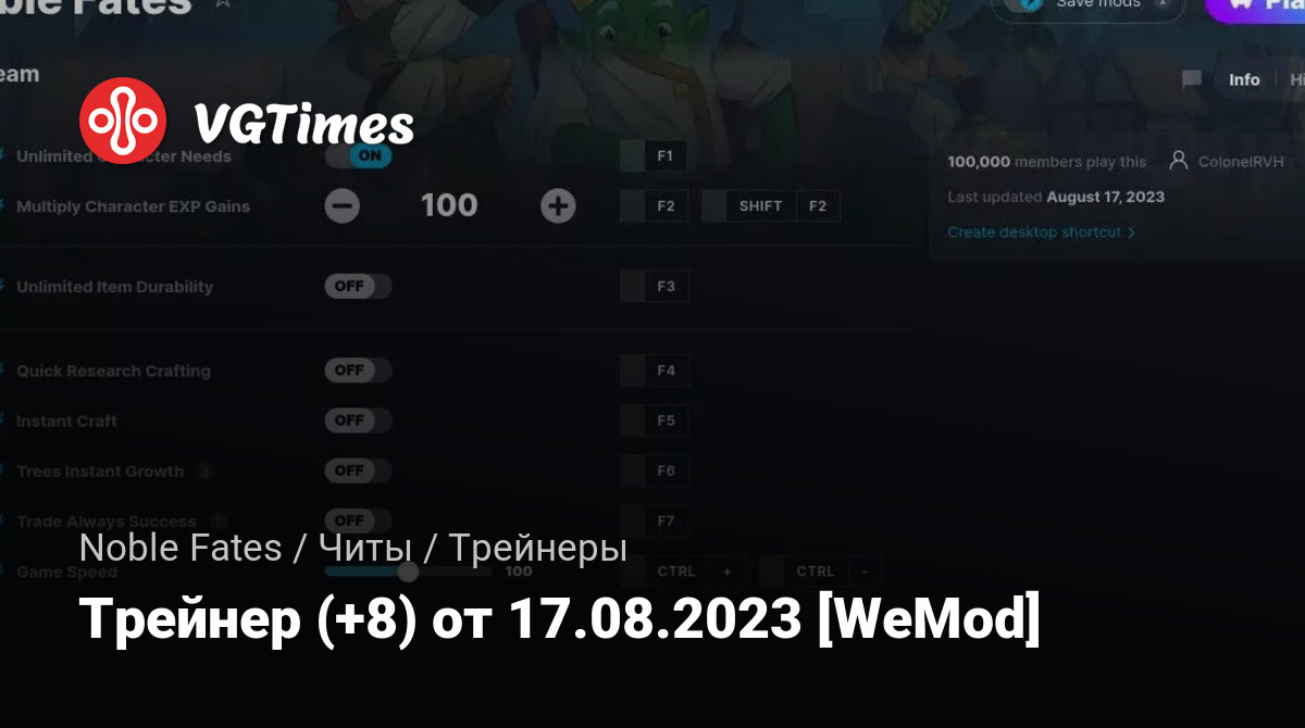 Трейнер (+8) от 17.08.2023 [WeMod]