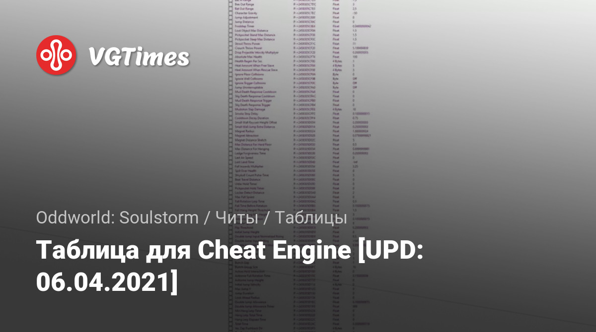 Таблица для Cheat Engine [UPD: 06.04.2021]