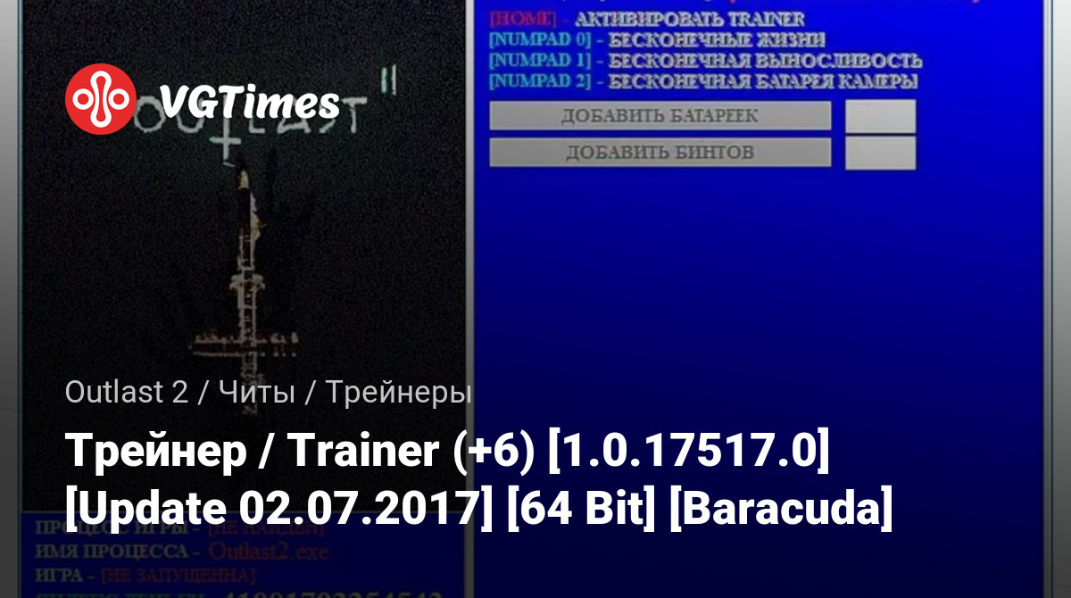 • Outlast 2 — Трейнер / Trainer (+6) [1.0.17517.0] [Update 02.07.2017] [64 Bit] [Baracuda]