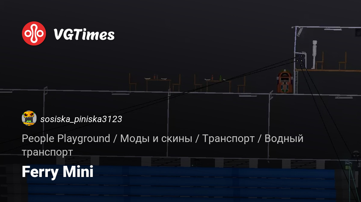 Ferry mini — feri yang dapat menampung bus, mobil, atau tank, dan juga memiliki area untuk tamu: meja dan speaker dengan musik, serta ruang kapten, yang dilengkapi dengan televisi, monitor, dan tombol kontrol. M-N: membuka pintu. J-K: menghidupkan akumulator pintu. O: menghidupkan mesin. Untuk menginstal mod, pindahkan konten arsip ke folder contraption.