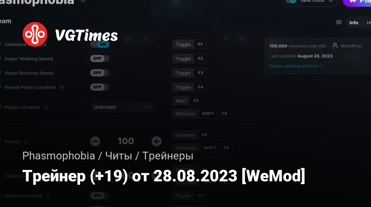 Трейнер (+19) от 28.08.2023 [WeMod]
