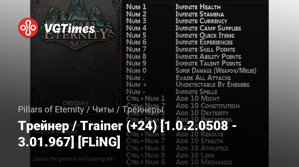 Permainan Pillars of Eternity Berkas Pelatih Трейнер / Trainer (+24) [1.0.2.0508 - 3.01.967] [FLiNG]