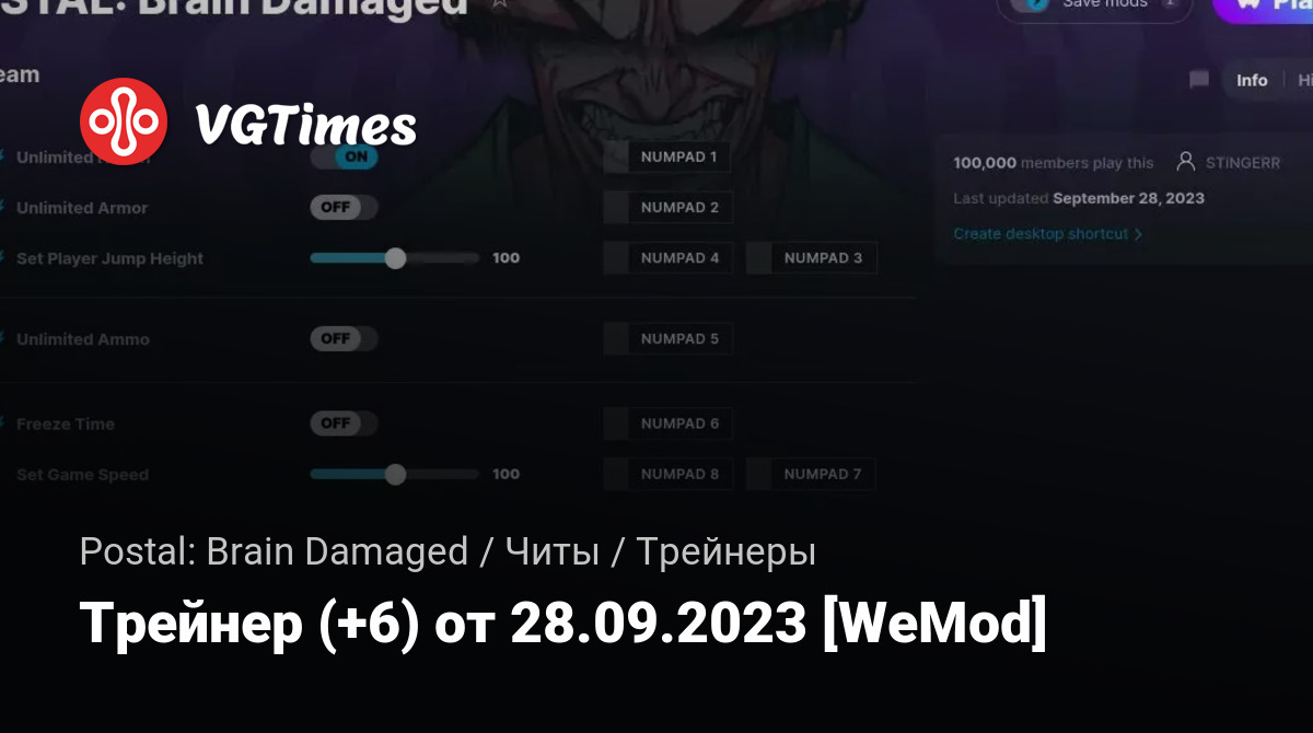 • Postal: Brain Damaged — Трейнер (+6) от 28.09.2023 [WeMod]