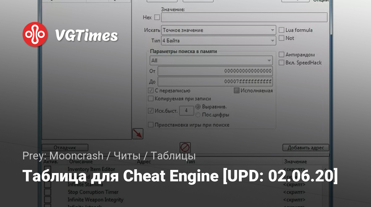 Таблица для Cheat Engine [UPD: 02.06.20]