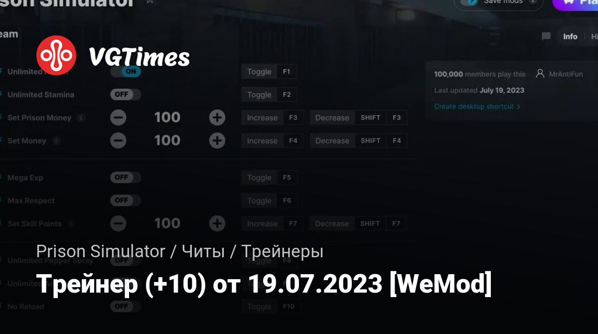 • Prison Simulator — Трейнер (+10) от 19.07.2023 [WeMod]
