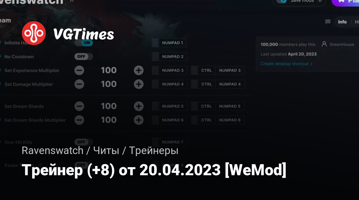 Для использования трейнера необходима установка системы WeMod (требуется онлайн подключение).