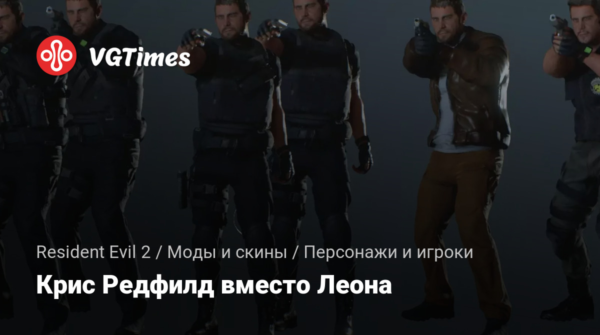 Заменяет Леона на Криса Редфилда, из игры Resident Evil: Village, с его снаряжением. Смысл в том, чтобы сделать игровой процесс за Криса Редфилда максимально доступным для выбора. Добавлены необязательные «экипировка в стиле Криса Редфилда RE1» и «голова Криса Редфилда RE8» в виде отдельных необязательных файлов для тех, кому не нужен весь пакет и нужен только этот наряд или только голова.