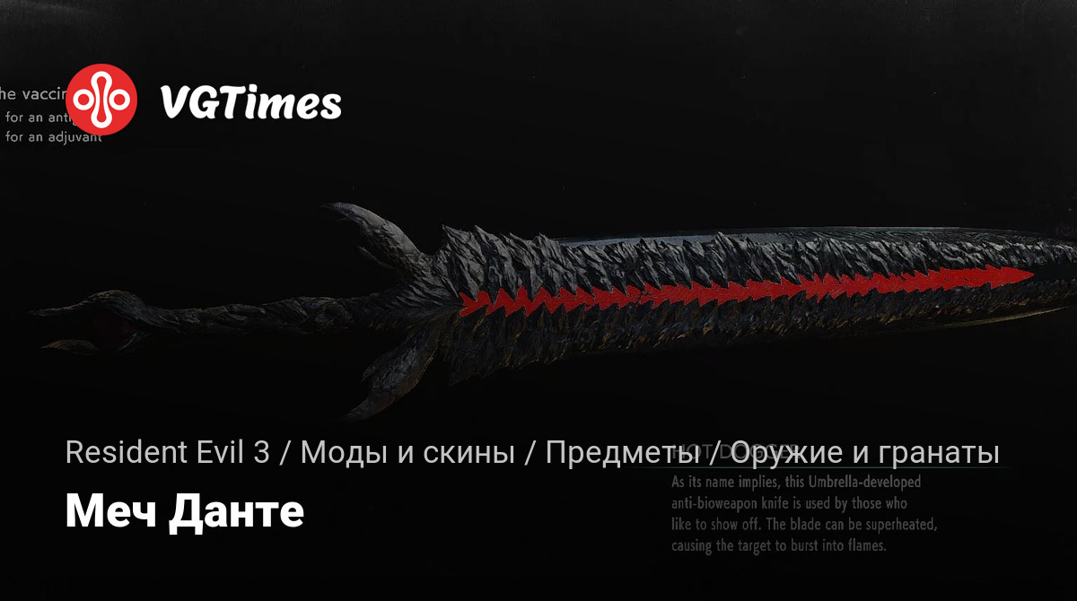Новый мод для ремейка хоррора Resident Evil 3 добавляет в игру меч Данте из серии игр Devil May Cry. Для корректной работы модификации, оригинальная модель меча была уменьшена, чтобы она соответствовала модели персонажам и стандартным анимациями.