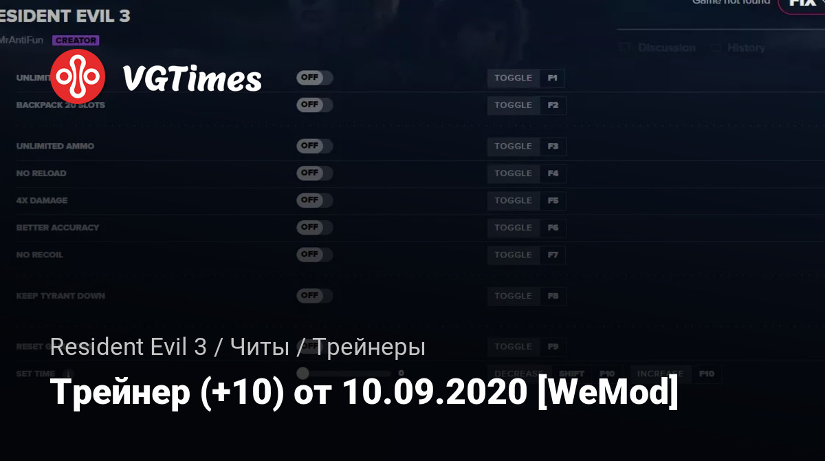 Трейнер (+10) от 10.09.2020 [WeMod]