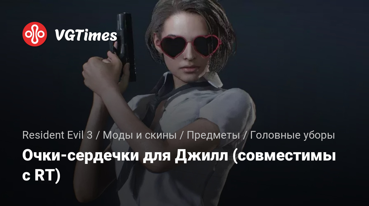 Джилл носит крутые солнцезащитные очки в форме сердца (совместимые с трассировкой лучей). Включает в себя замену большой шеи Джилл, которая обычно используется в модах, поэтому она должна быть совместима с большинством модов вместе с ее одеждой по умолчанию.
