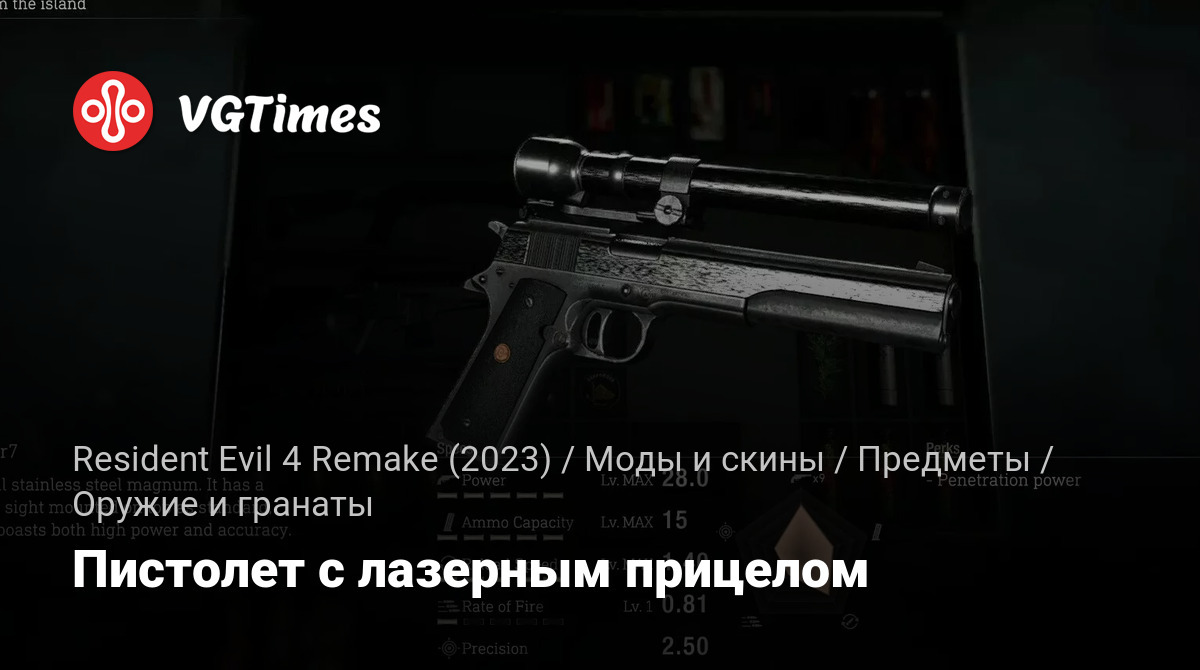 Заменяет пистолет Леона Killer7 на AMT Hardballer Longslide с лазерным прицелом.