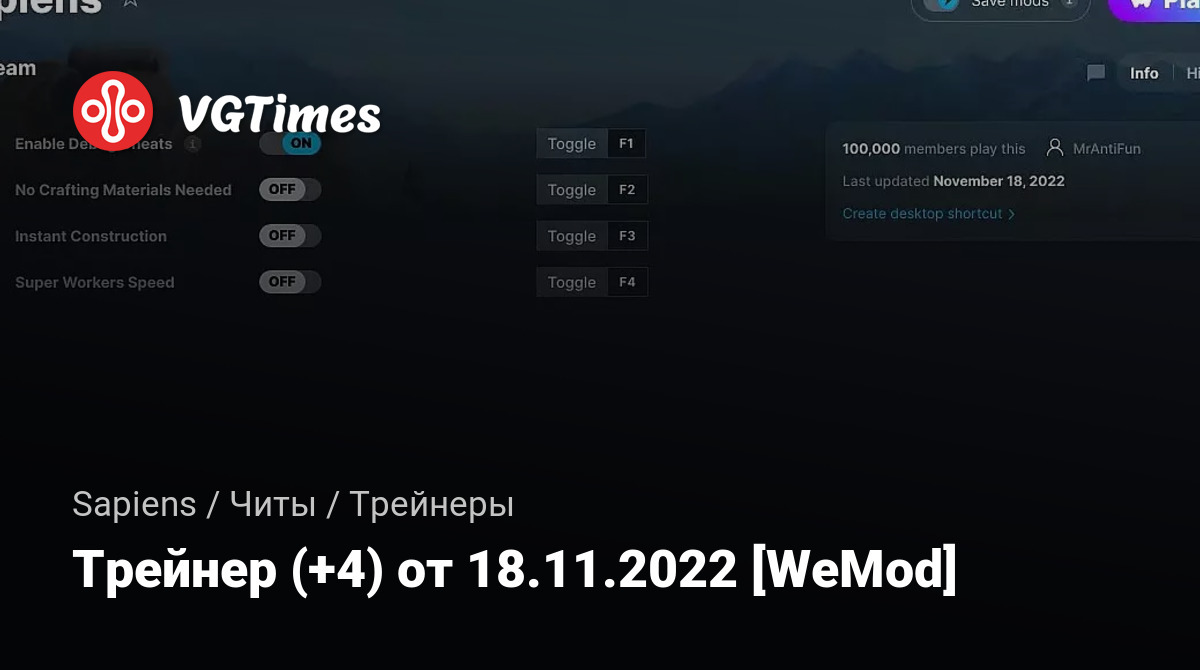 Для использования трейнера необходима установка системы WeMod (требуется онлайн подключение).