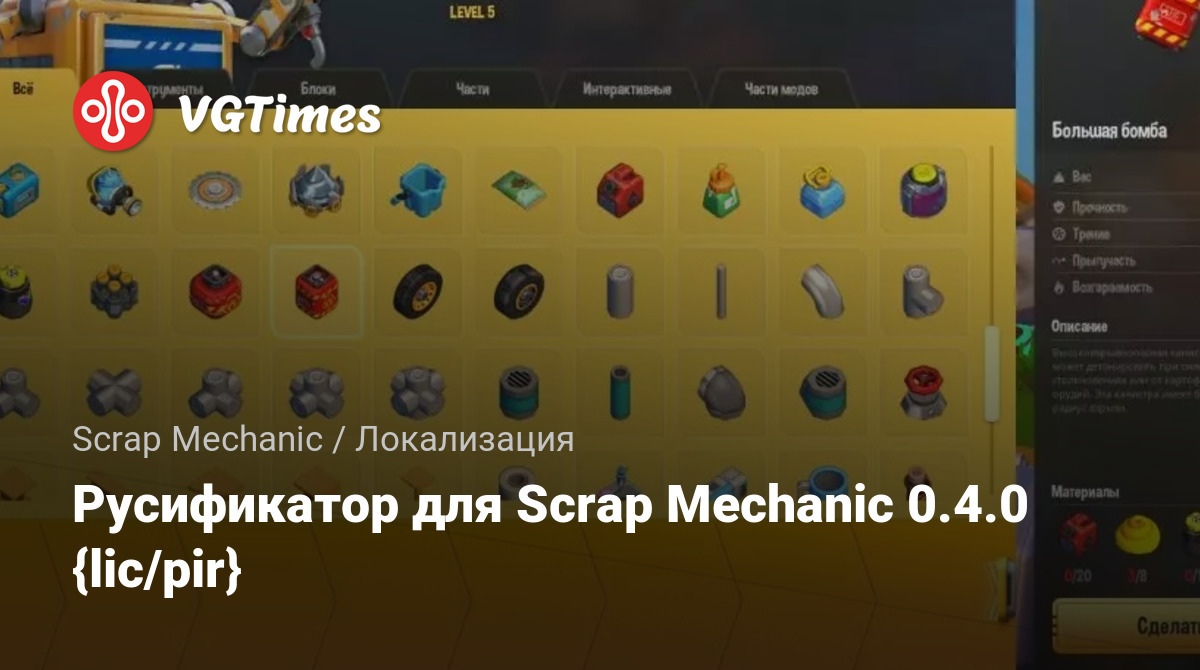 Русификатор для Scrap Mechanic 0.4.0 {lic/pir}