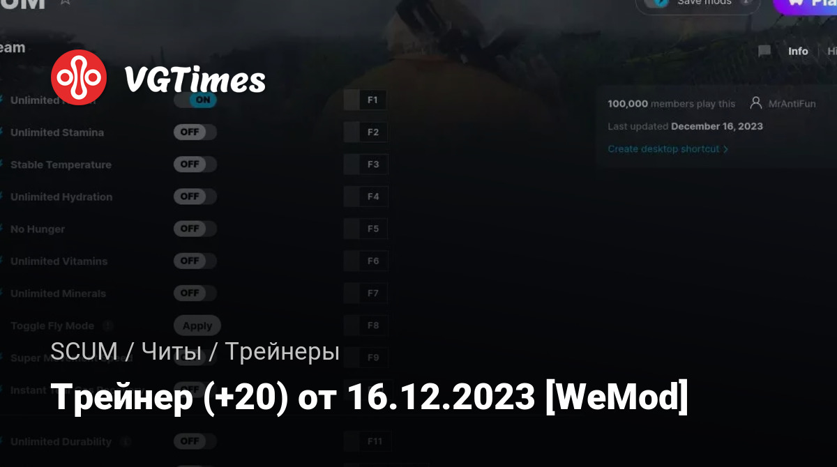 Для использования трейнера необходима установка системы WeMod (требуется онлайн подключение).