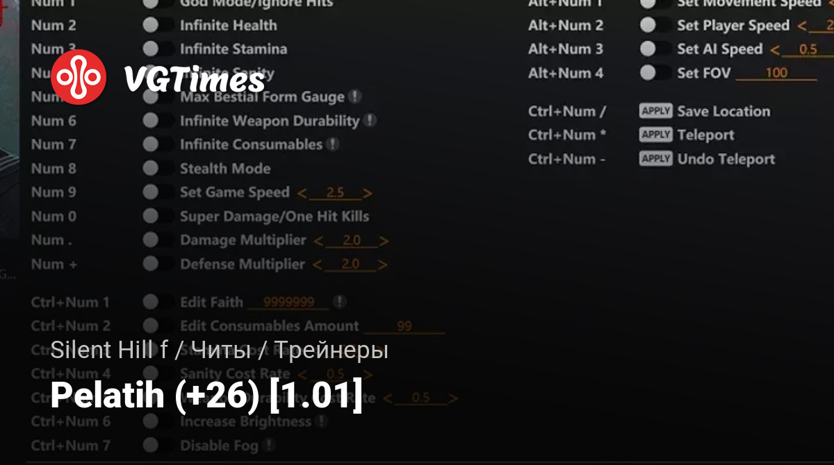 • Num 1 – God Mode/Ignore Hits — Режим бога / Игнорировать урон.