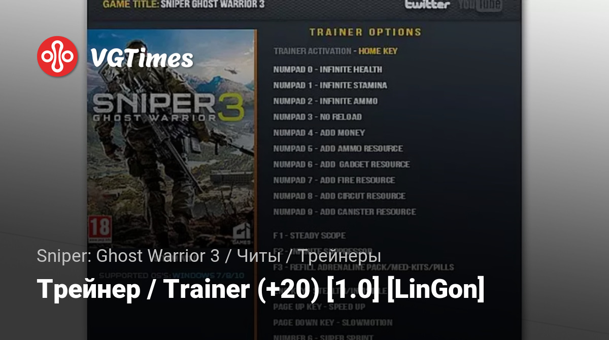 Permainan Sniper: Ghost Warrior 3 Berkas Pelatih Трейнер / Trainer (+20) [1.0] [LinGon]
