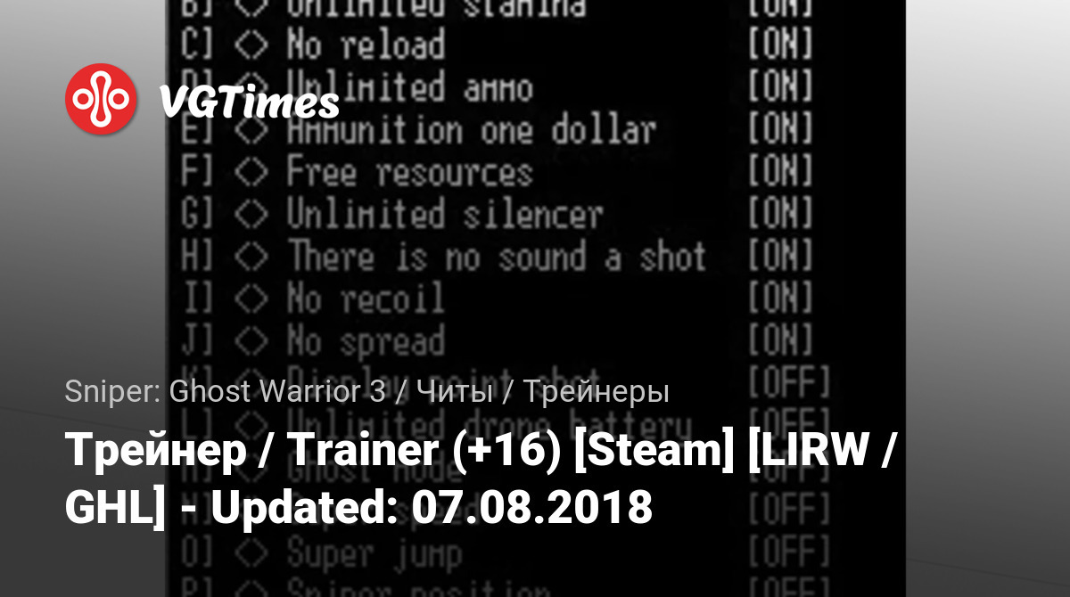 Трейнер / Trainer (+16) [Steam] [LIRW / GHL] - Updated: 07.08.2018