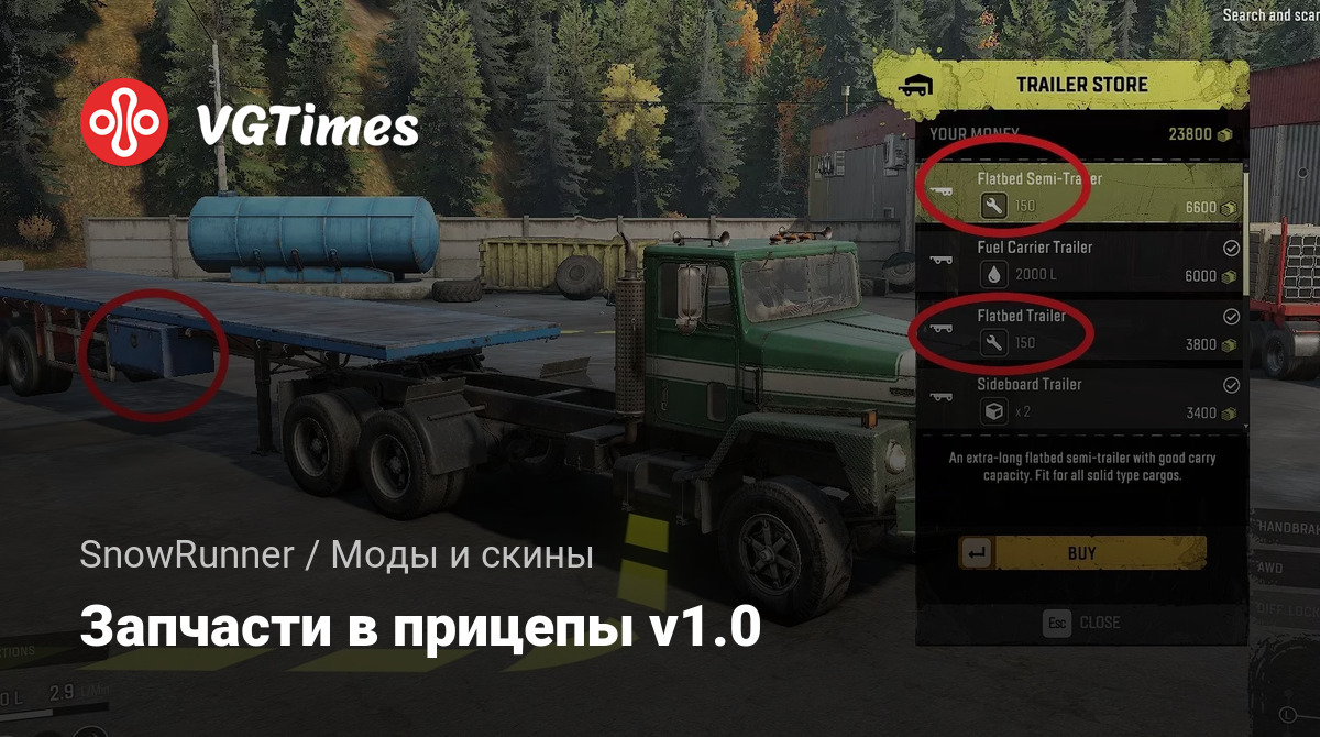 Этот мод предоставляет возможность перевозить запчасти в тех прицепах, где есть ящики. Есть небольшой баг с отображением количества мест для груза в трейлерах в магазине, но загрузка и количество сохраняются без изменений.