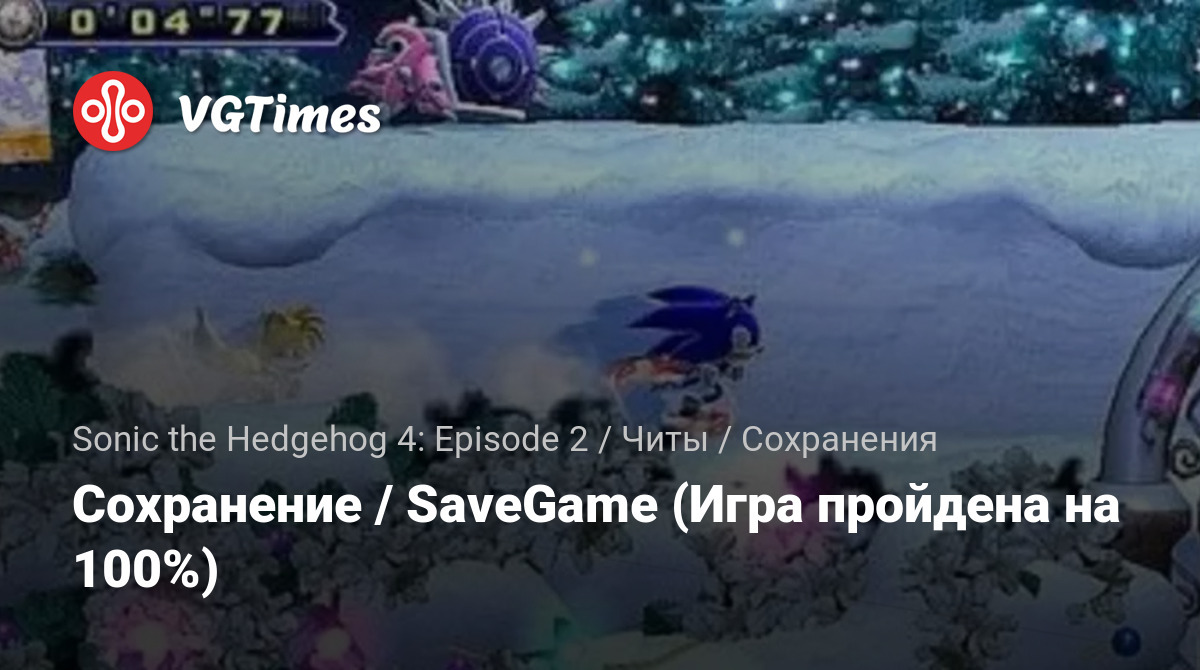 Permainan Sonic the Hedgehog 4: Episode 2 Berkas Simpan Сохранение / SaveGame (Игра пройдена на 100%)