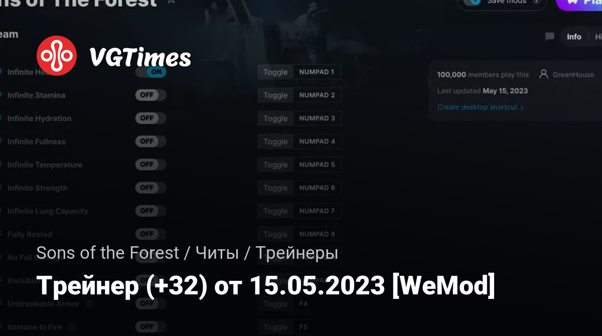 • Sons of the Forest — Трейнер (+32) от 15.05.2023 [WeMod]