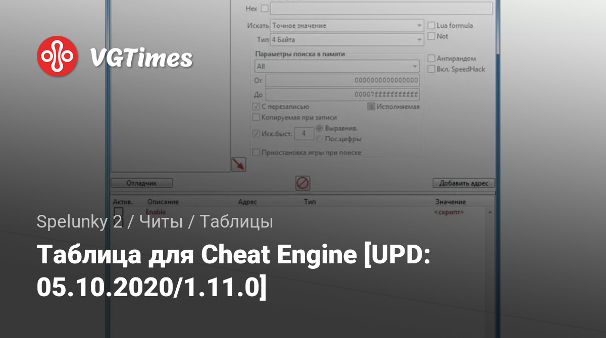 Таблица для Cheat Engine [UPD: 05.10.2020/1.11.0]