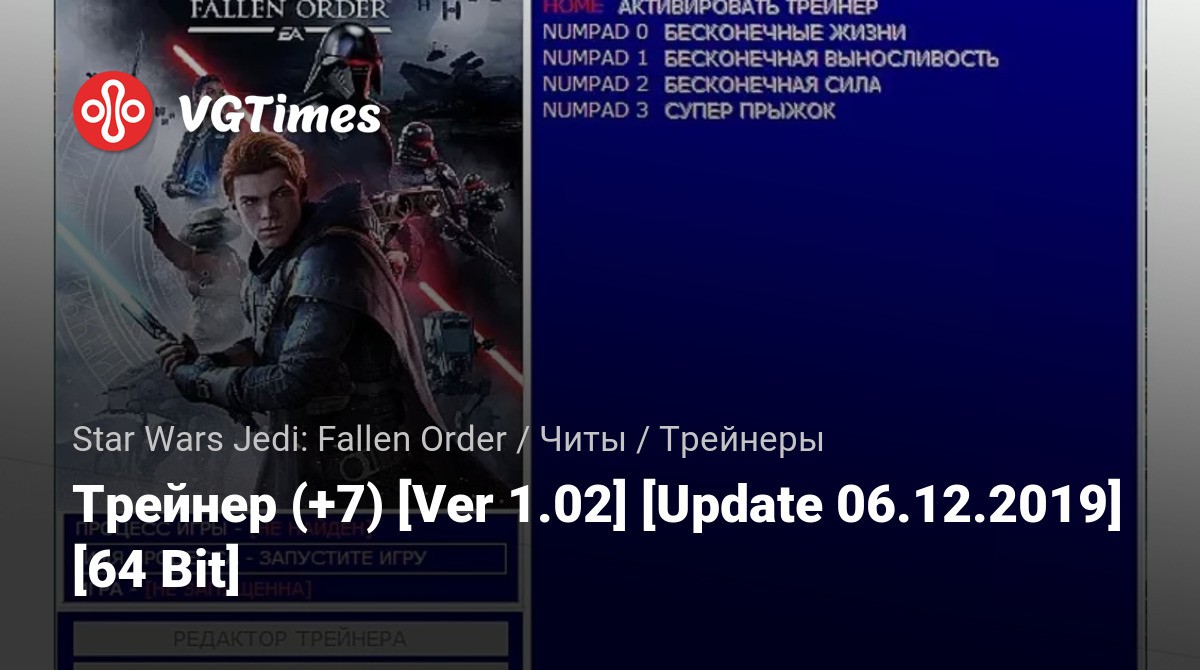 • Star Wars Jedi: Fallen Order — Трейнер (+7) [Ver 1.02] [Update 06.12.2019] [64 Bit]