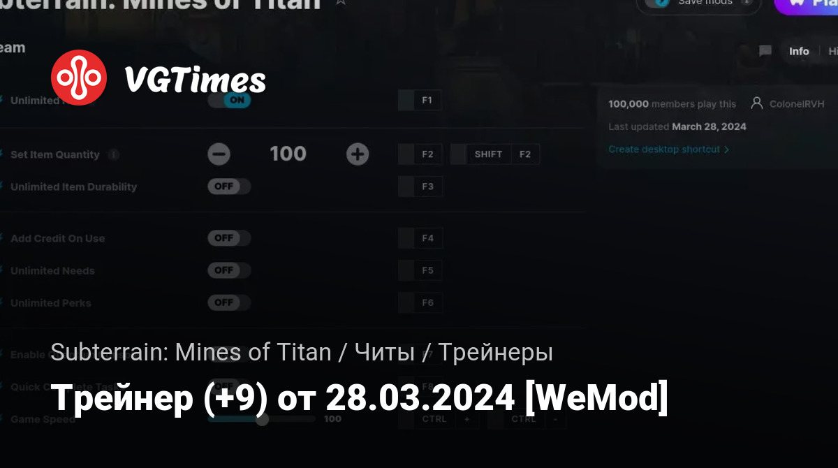 Для использования трейнера необходима установка системы WeMod (требуется онлайн подключение).