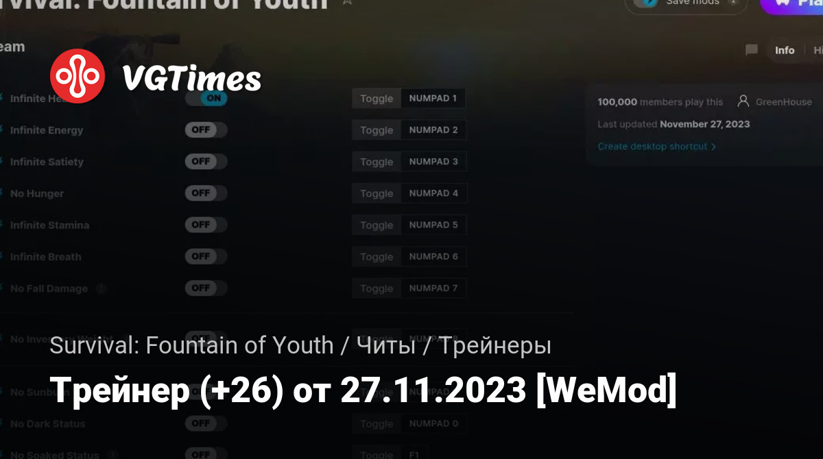• Survival: Fountain of Youth — Трейнер (+26) от 27.11.2023 [WeMod]