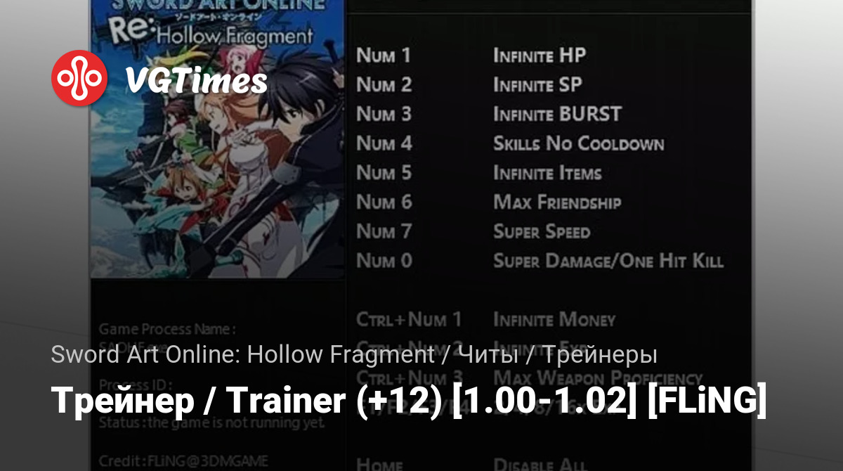 Permainan Sword Art Online: Hollow Fragment Berkas Pelatih Трейнер / Trainer (+12) [1.00-1.02] [FLiNG]