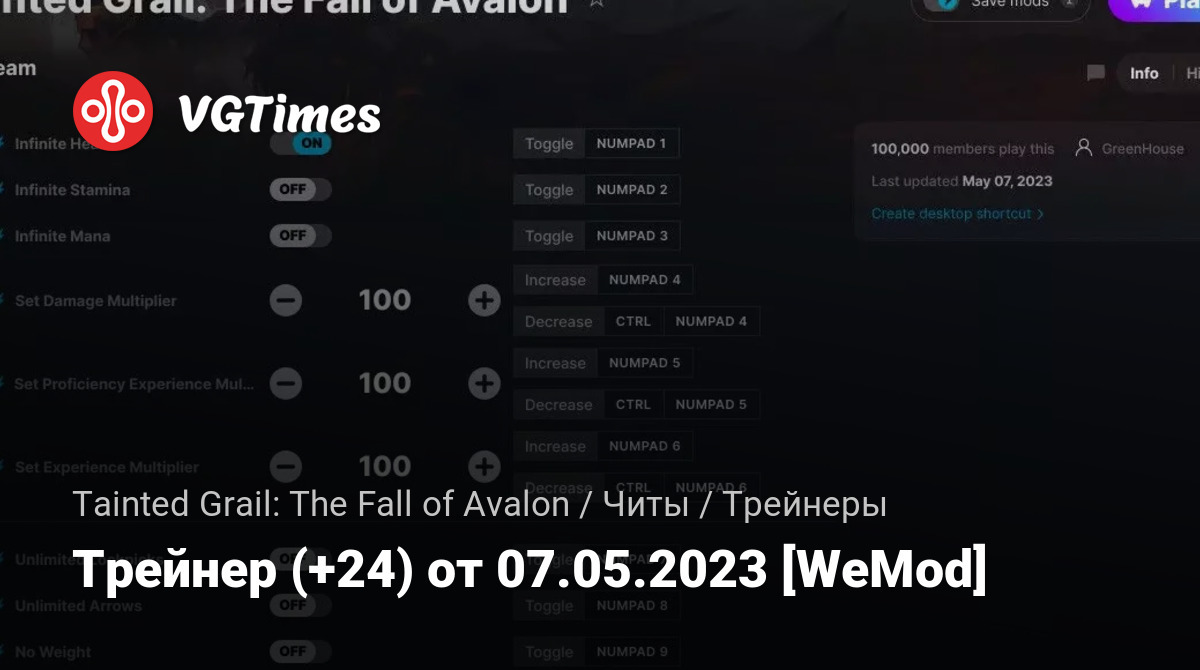 Для использования трейнера необходима установка системы WeMod (требуется онлайн подключение).