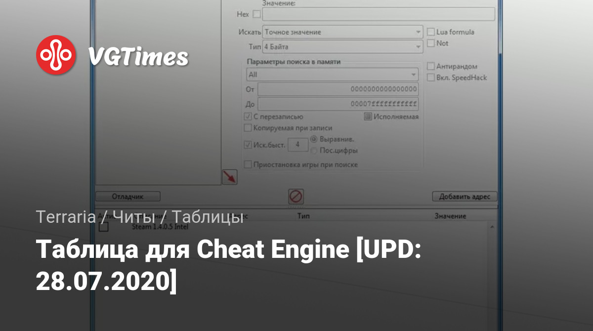 Таблица для Cheat Engine [UPD: 28.07.2020]