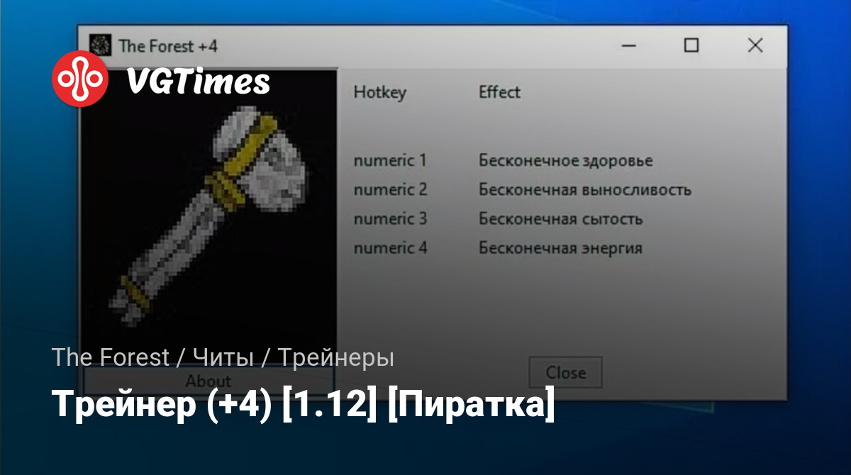 Трейнер работает только на версии 1.12, и только на процессе игры TheForest.exe(Взято из инструкции трейнера.).