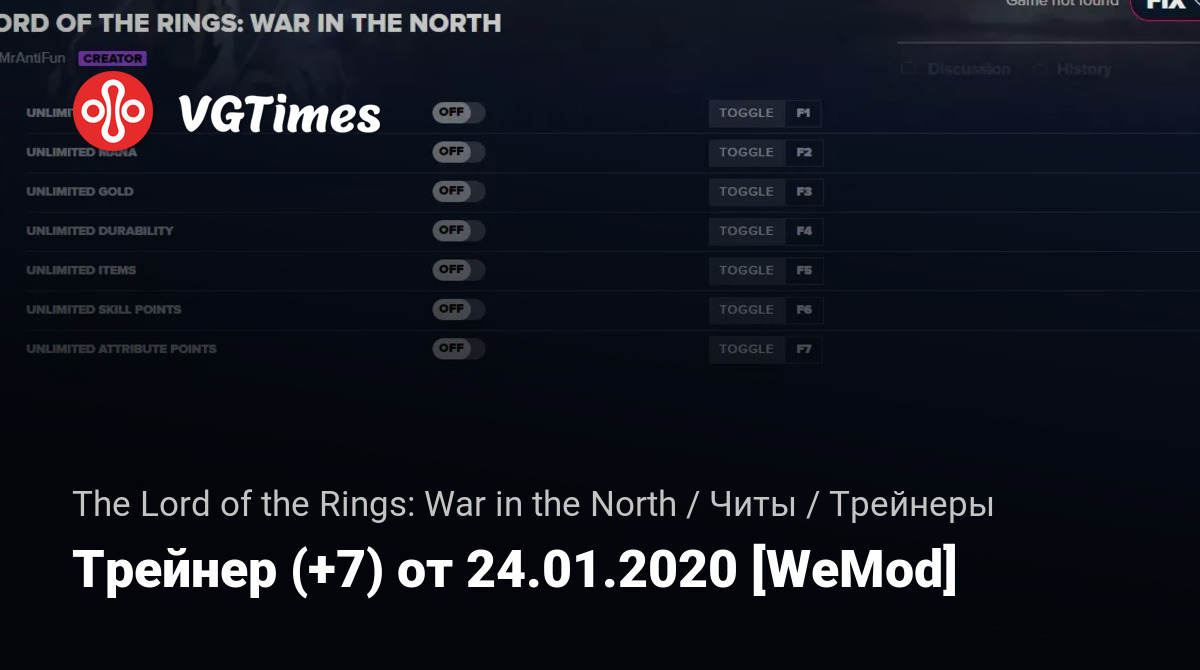 • The Lord of the Rings: War in the North — Трейнер (+7) от 24.01.2020 [WeMod]
