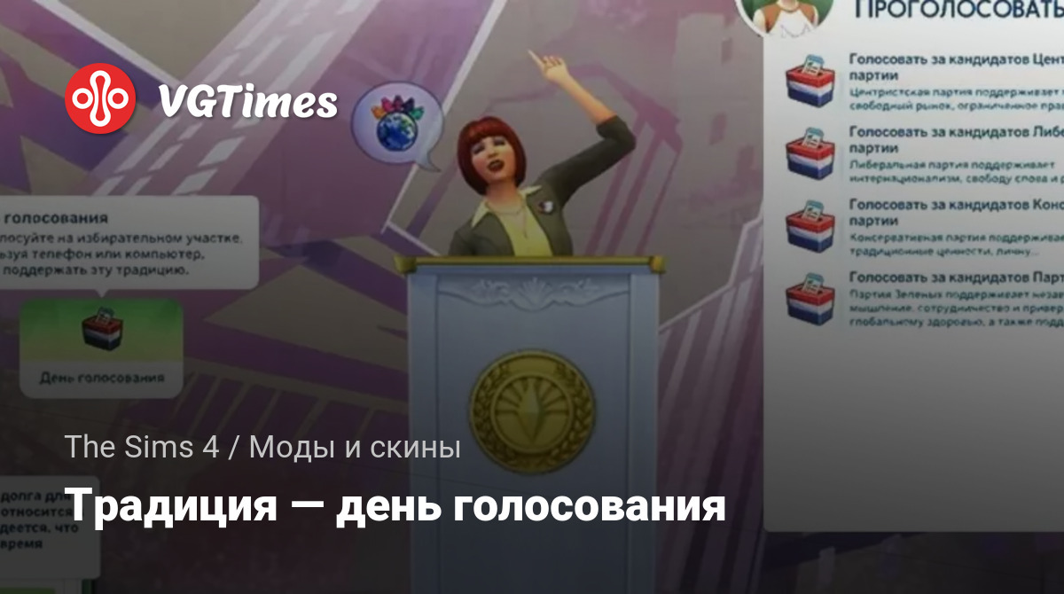 Вы никогда не задумывались почему в мире Sims есть карьера политика, но нет голосования за партии? А как на счет того, чтобы устроить своим персонажам настоящий день выборов?