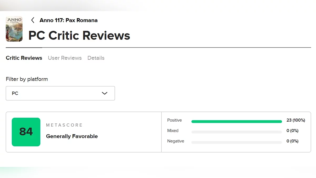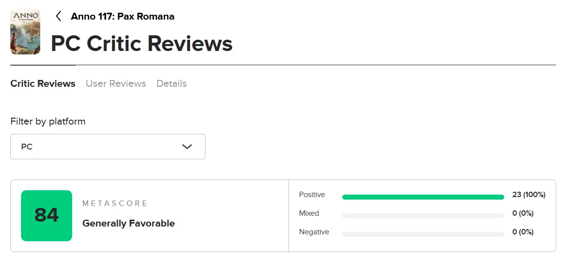 Dengan hanya beberapa hari menjelang rilis strategi pembangunan kota waktu nyata Anno 117: Pax Romana, ulasan kritikus pertama sudah masuk—dan sebagian besar outlet memuji proyek terbaru Ubisoft. Hingga tulisan ini dibuat, permainan ini memiliki skor solid 84 di Metacritic.
