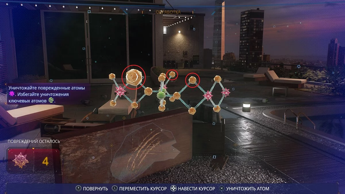 Dalam teka-teki kedua, klik pada atom kuning yang paling kiri, yang kedua dari kanan, dan yang kedua dari bawah.